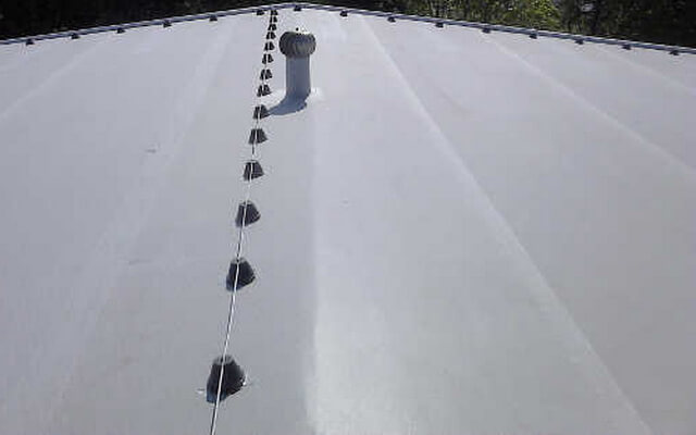 Стальные листы 0,4÷0,5мм с полимерным покрытием, которые соединены между собой посредством фальцевого замка, дающее надежное герметичное соединение.